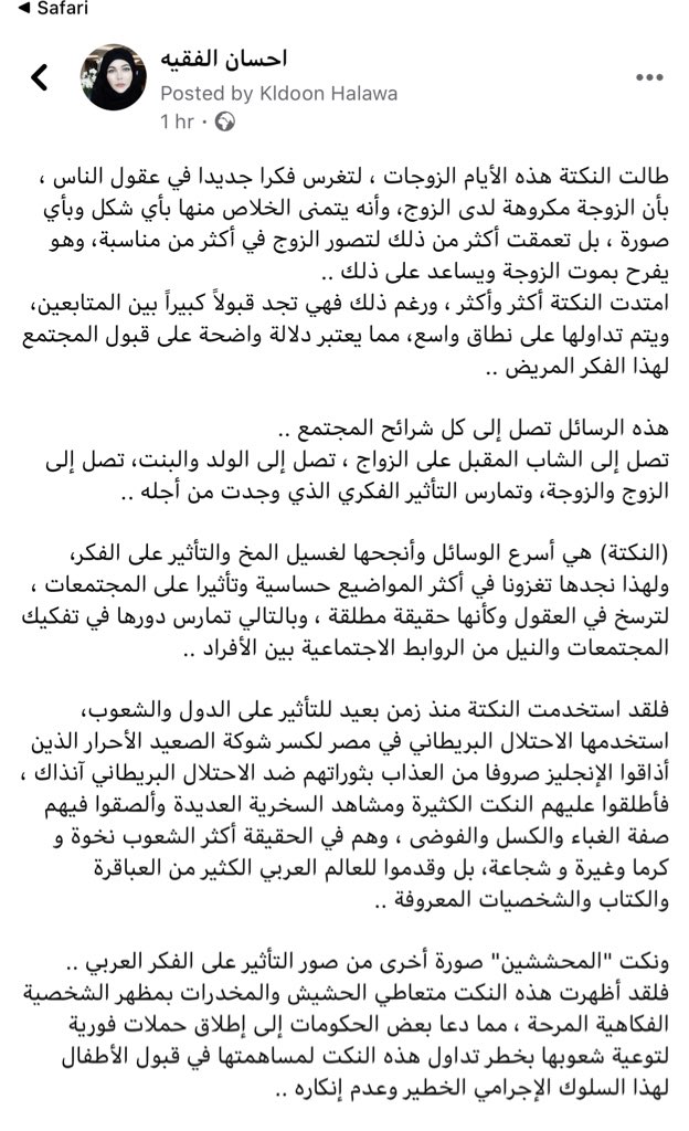 احسان الفقيه Auf Twitter طالت النكتة هذه الأيام الزوجات لتغرس فكرا جديدا في عقول الناس بأن الزوجة مكروهة لدى الزوج وأنه يتمنى الخلاص منها بأي شكل وبأي صورة بل