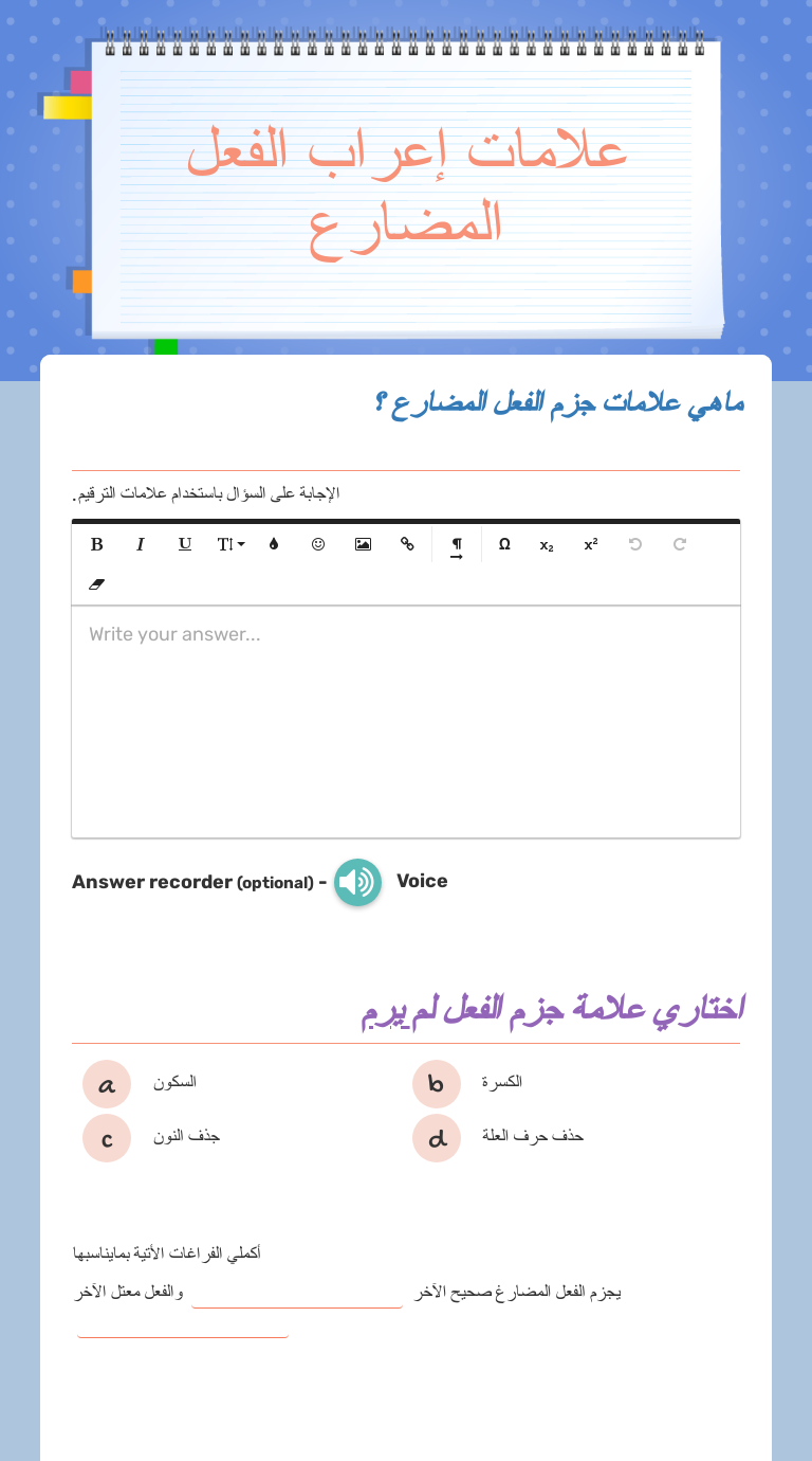 علامات إعراب الفعل المضارع Interactive Worksheet By لمار احمد Wizer Me