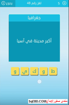 اجابة لغز اكبر مدينة فى اسيا من اللغز رقم 48 من لعبة رشفة للمجموعة السادسة صقور الإبدآع