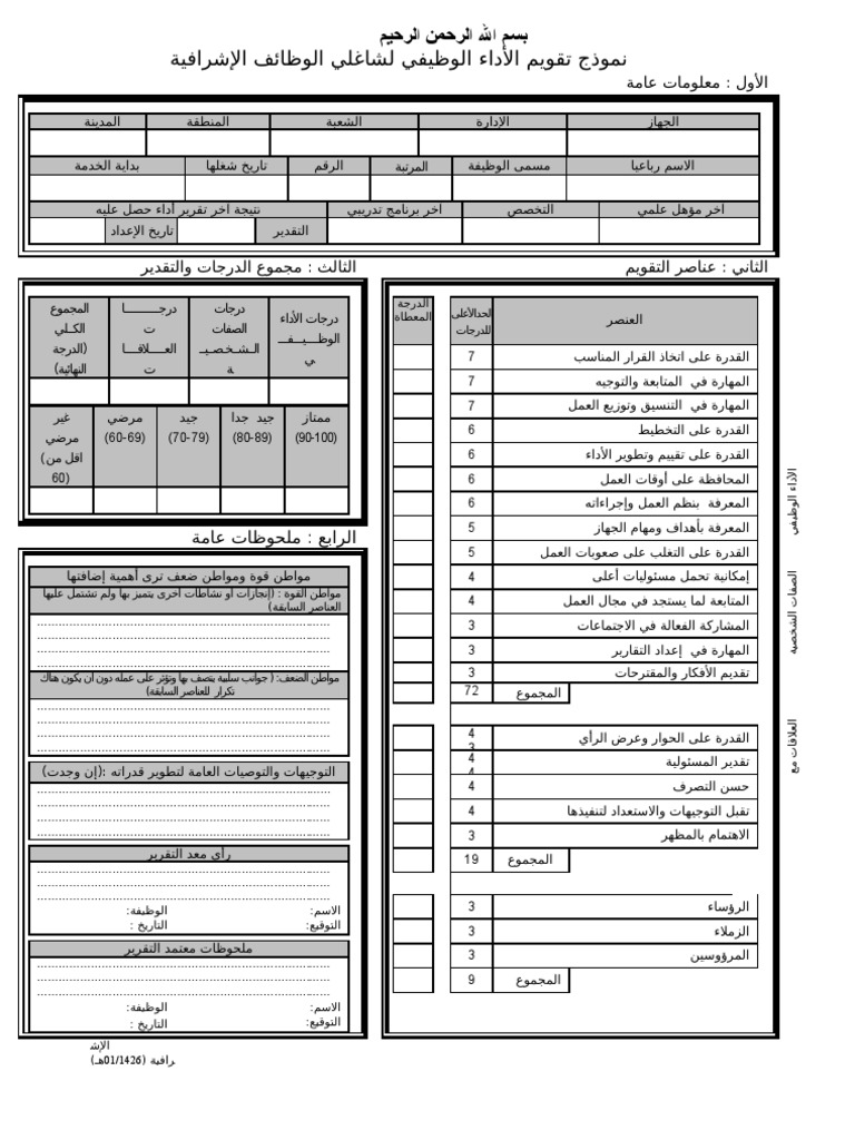 استمارة تقييم الاداء