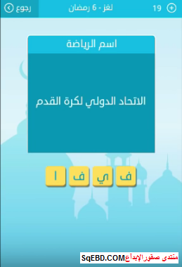 جواب لغز الاتحاد الدولة لكرة القدم من لغز 6 رمضان من لعبة رشفة رمضانية صقور الإبدآع