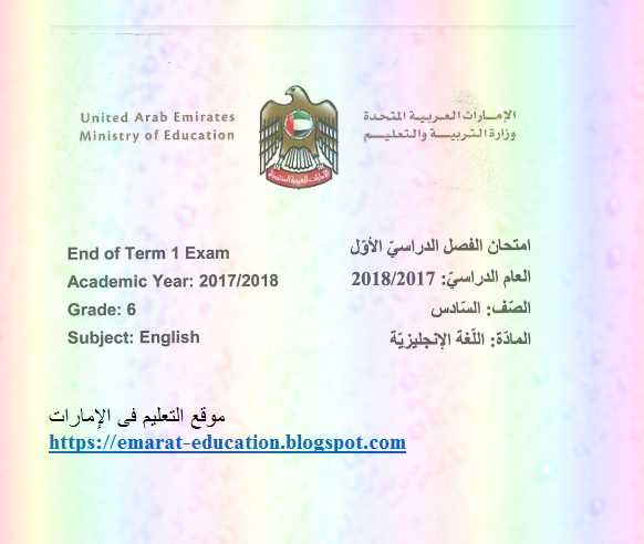 امتحان الوزارة فى اللغة الانجليزية للصف السادس بالإمارات الفصل الدراسى الأول 2018 2017