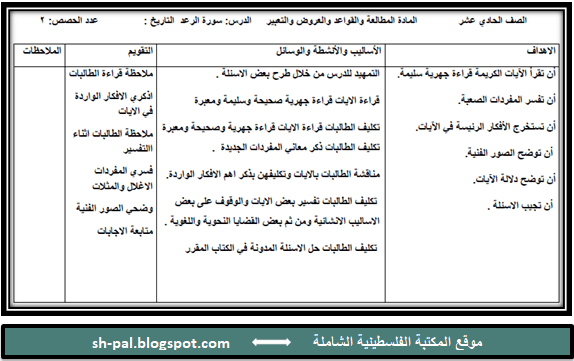 تحضير لغة عربية للصف الحادي عشر الفصل الأول المكتبة الفلسطينية الشاملة
