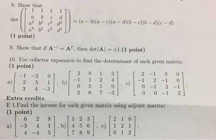 Solved Show That Det 1 1 1 1 A B C D A 2 B 2 C 2 D 2 A 3 Chegg Com