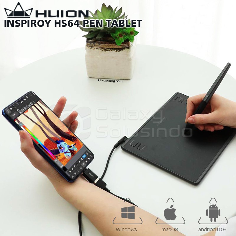 Huion Hs64 Graphic Drawing Tablet Phone Android Alt H420 H430p Hs610 H640p H640 H430 Shopee Indonesia